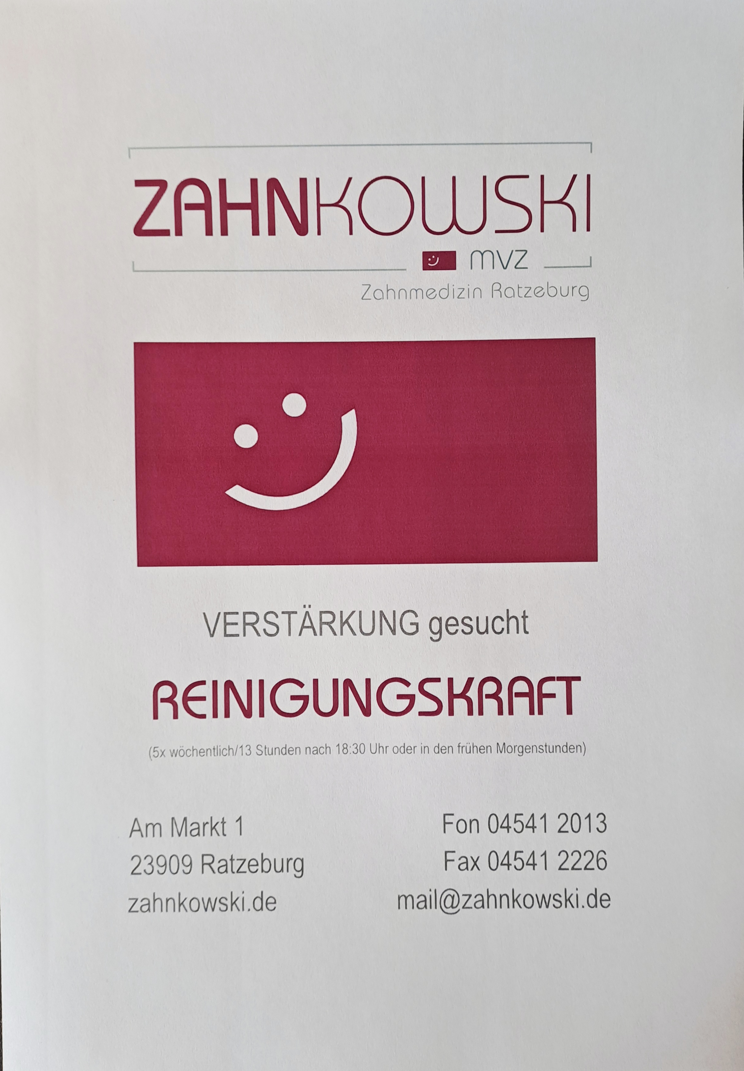 Am Markt 1 | 23909 Ratzeburg 04541 - 2013 | mail@zahnkowski.de